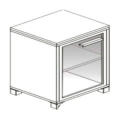Топ из ДСП 22 мм., остальные элементы из ДСП 16 мм., кромка ПВХ 0,45 мм, регулируемые опоры, тонированное стекло.