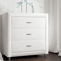 Элегантный комод отличается стильным дизайном и повышенным удобством. Три выдвижных ящика оснащены надёжными направляющими, обеспечивающими лёгкое открытие. Фасад ящиков и стенки комода покрыты обивочным материалом. Для удобства использования и продления срока эксплуатации, рекомендуется использовать стеклянную накладку. Накладка используется в качестве столешницы для комода и защищает его от повреждений и загрязнений.